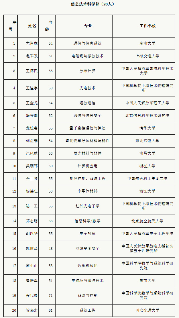 关于公布2017年中国科学院院士增选初步候选人名单的公告