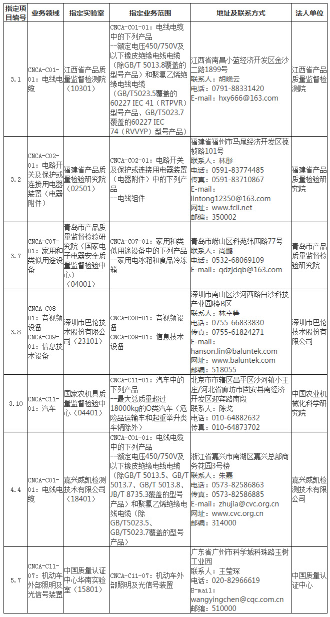 2020年第四批强制性产品认证实验室日常指定决定