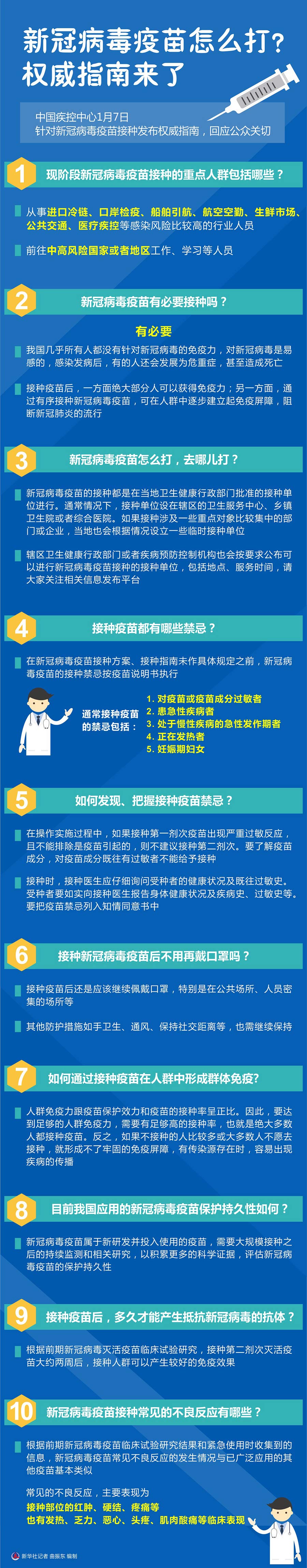中国疾控中心7日针对新冠病毒疫苗接种发布权威指南,回应公众关切。