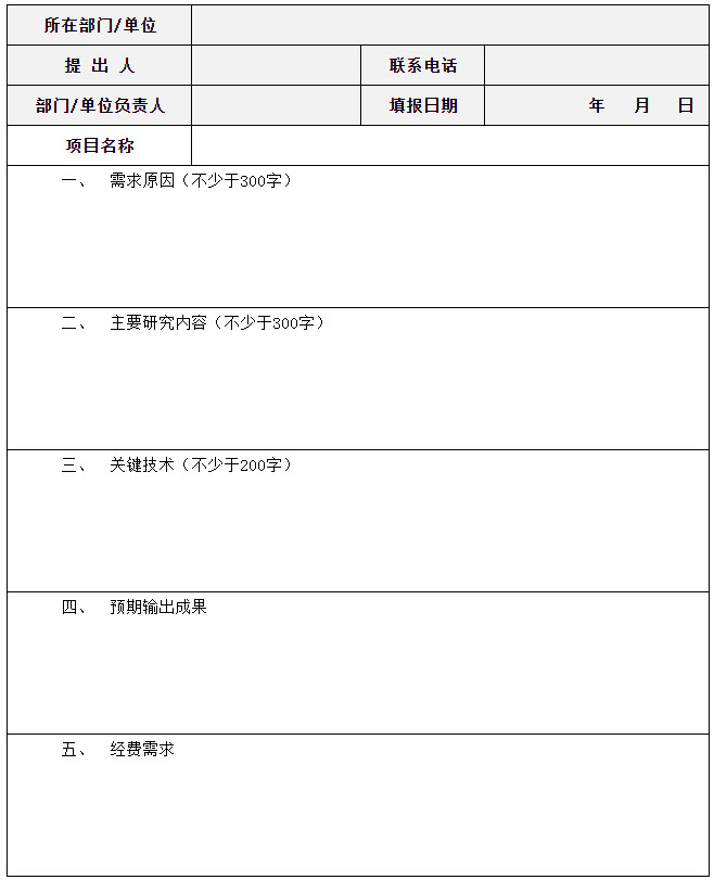 (一)填写附件《科技需求征集表》,请将纸质版签字盖章扫描为PDF,连同《科技需求征集表》word电子版一并发送至指定邮箱。