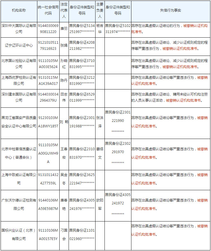 最新认证机构失信名录