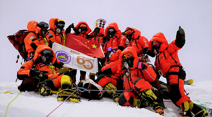 北京时间5月27日上午11时整,2020珠峰高程测量登山队8名攻顶队员,全部成功登顶珠峰,将五星红旗插上世界最高峰峰顶并开展各项测量工作。