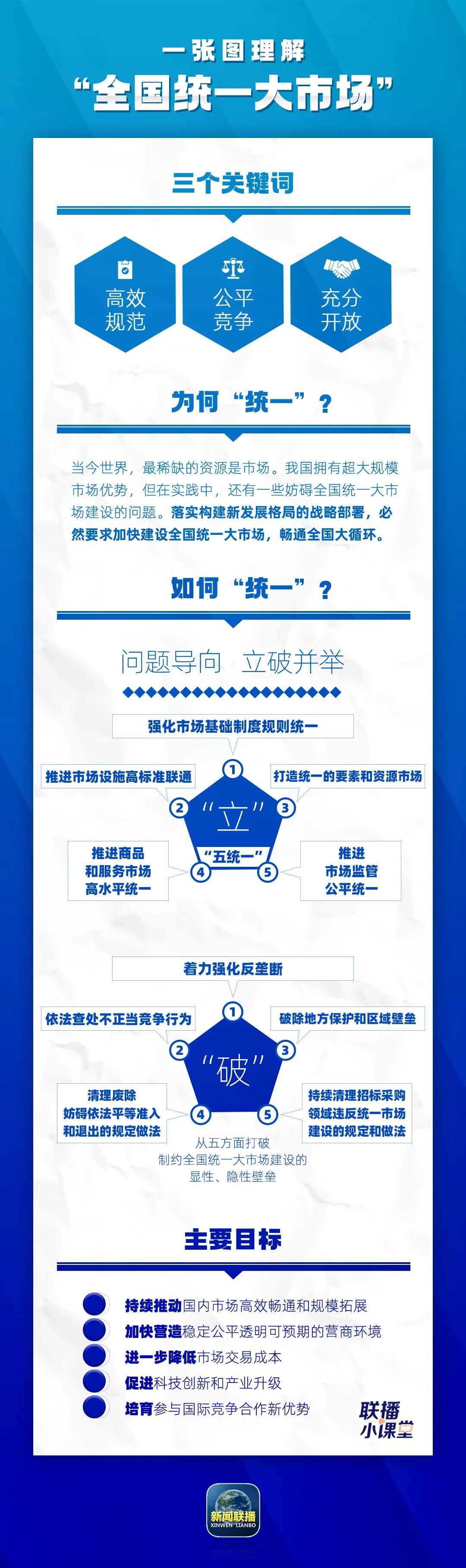 首先,建立统一大市场之后,会充分发挥超大规模市场在资源配置中的决定性作用,提升资源配置效率,激发竞争和创新,让经济发展更有活力,全球竞争力更强。
