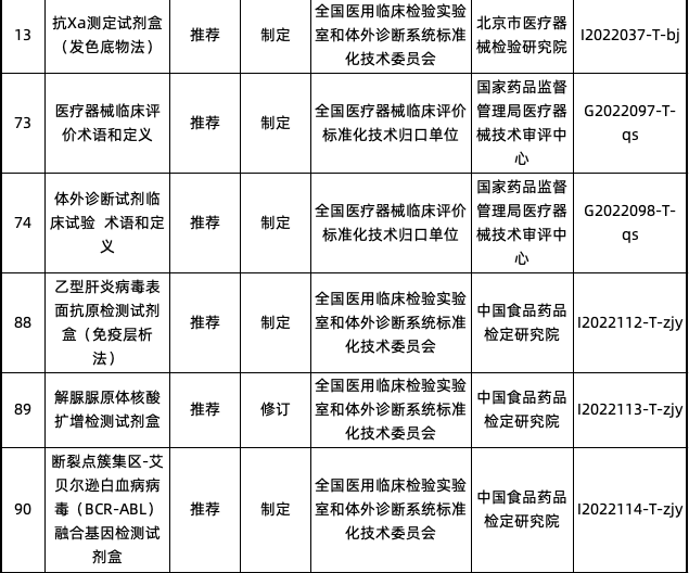 2022年医疗器械推荐性行业标准制修订计划项目