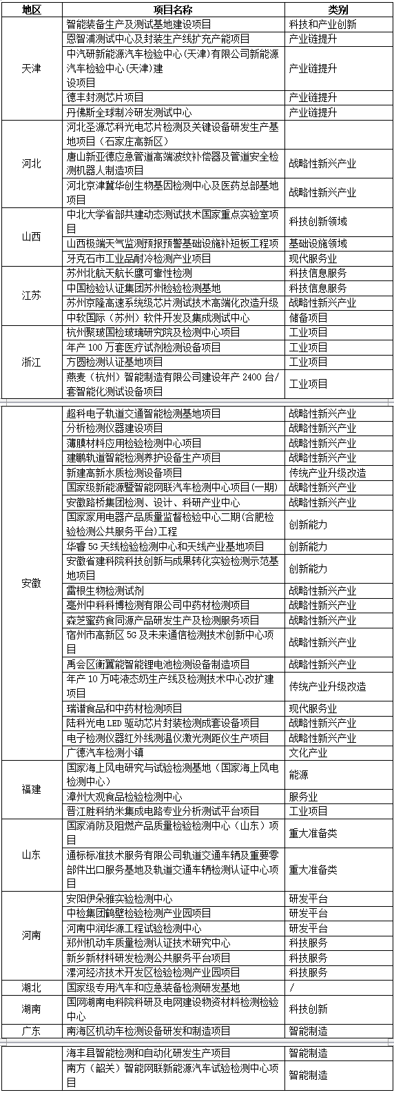 部分省市重点建设项目公告的检测检验部分如下表: