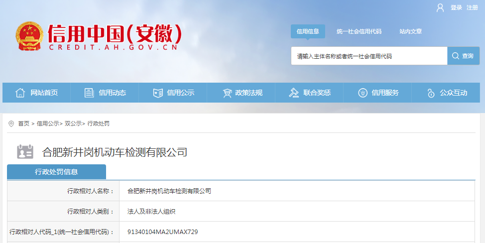 近日,信用中国(安徽)中发布,合肥新井岗机动车检测有限公司出具不实检验检测报告,依据《检验检测机构监督管理办法》第二十六条的规定,