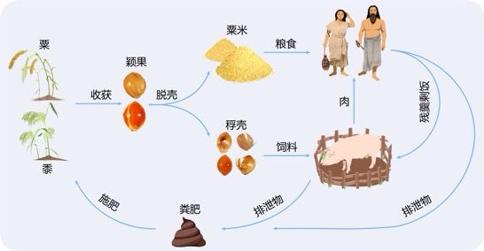 兰州大学环境考古团队以位于陇西黄土高原的甘肃秦安大地湾遗址为研究对象,从遗址出土的粟作农业系统核心要素——粟、黍和家猪入手,通过猪牙表层残留物中的淀粉粒和植硅体分析重建猪的食谱,通过粟、黍炭化种子的氮同位素分析追踪农田的施肥行为,发现在距今5500年前,大地湾遗址已经形成了一种高度集约化的农业模式:人吃粟米,猪吃稃壳;圈养家猪,收集粪便;猪粪肥田,维持地力,避免休耕,提高产量。这种农业模式与现代可持续的集约化农业模式完全一致,说明新石器时代晚期中国北方粟作农业社会,便通过粟、黍种植与家猪饲养的紧密结合,克服了粟、黍产量低和黄土肥力有限的瓶颈,为当时中国北方的复杂社会发展提供了经济基础。
