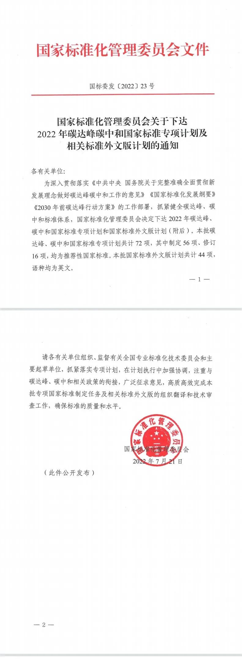 近日,国家标准化管理委员会下达2022年碳达峰碳中和国家标准专项计划及相关标准外文版计划,本批碳达峰、碳中和国家标准专项计划共计72项,其中制定56项、修订16项,均为推荐性国家标准。