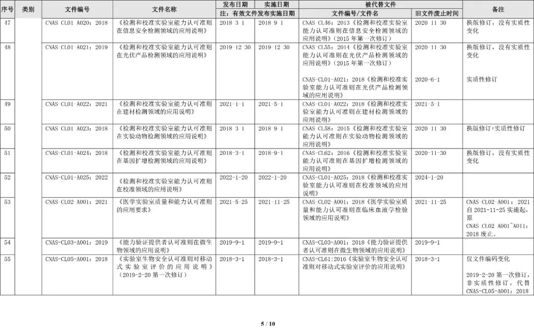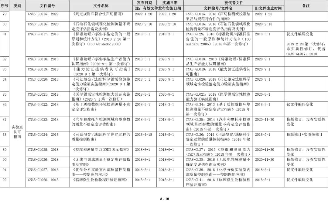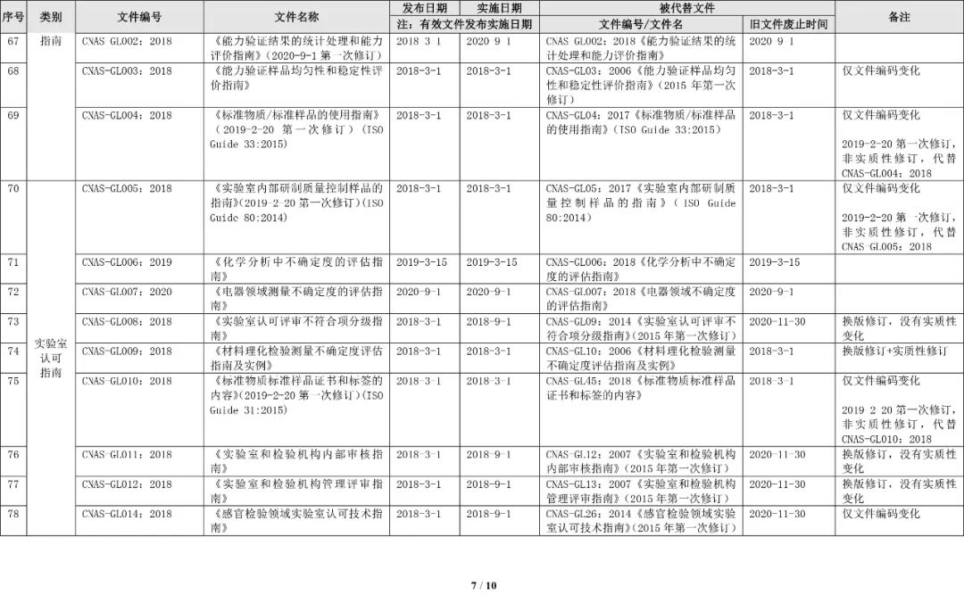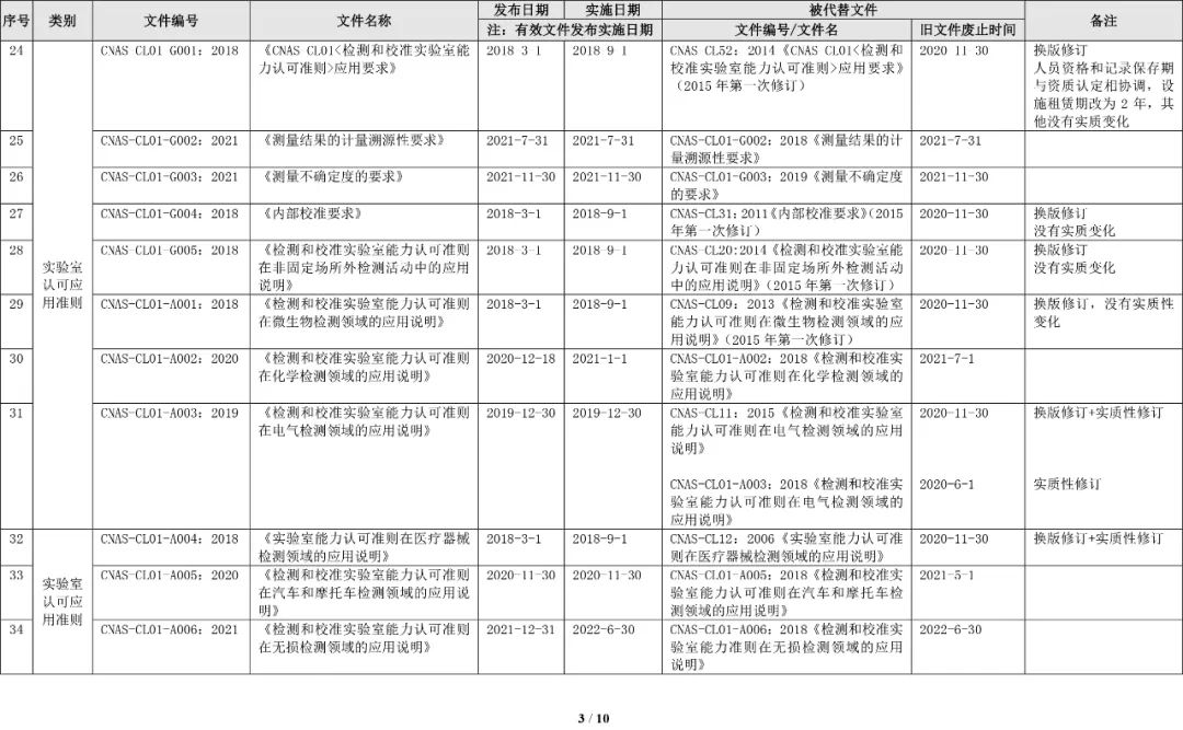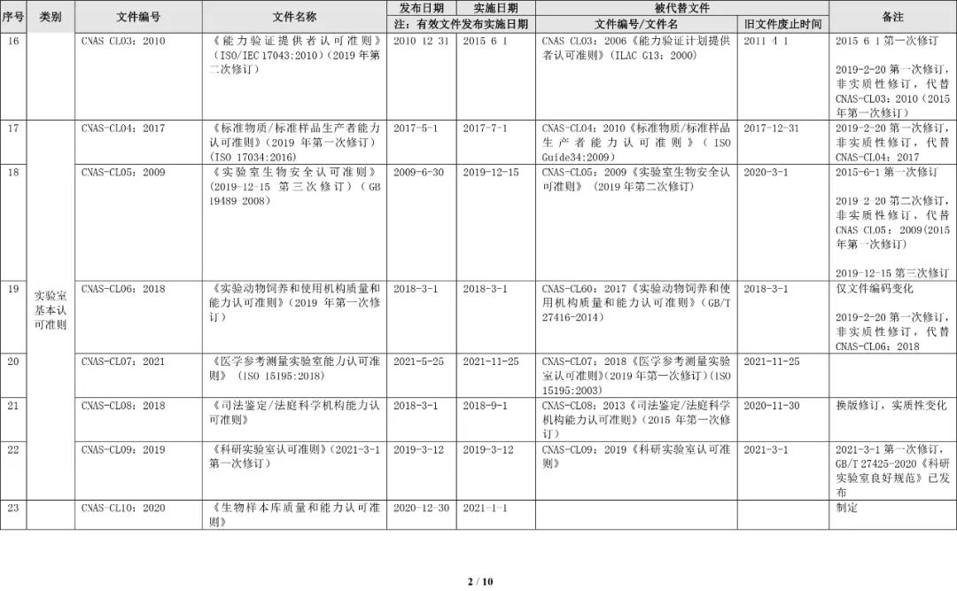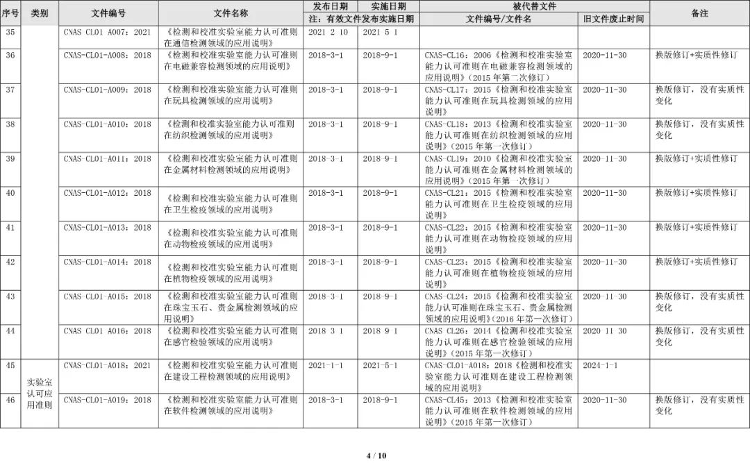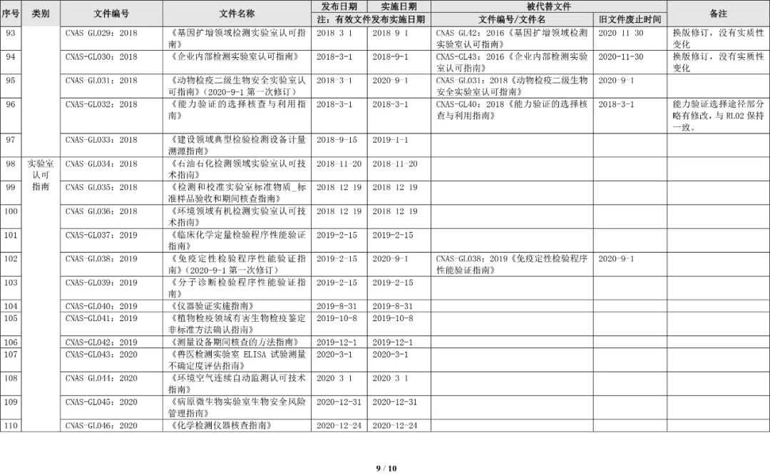 最新CNAS实验室认可规范文件清单
