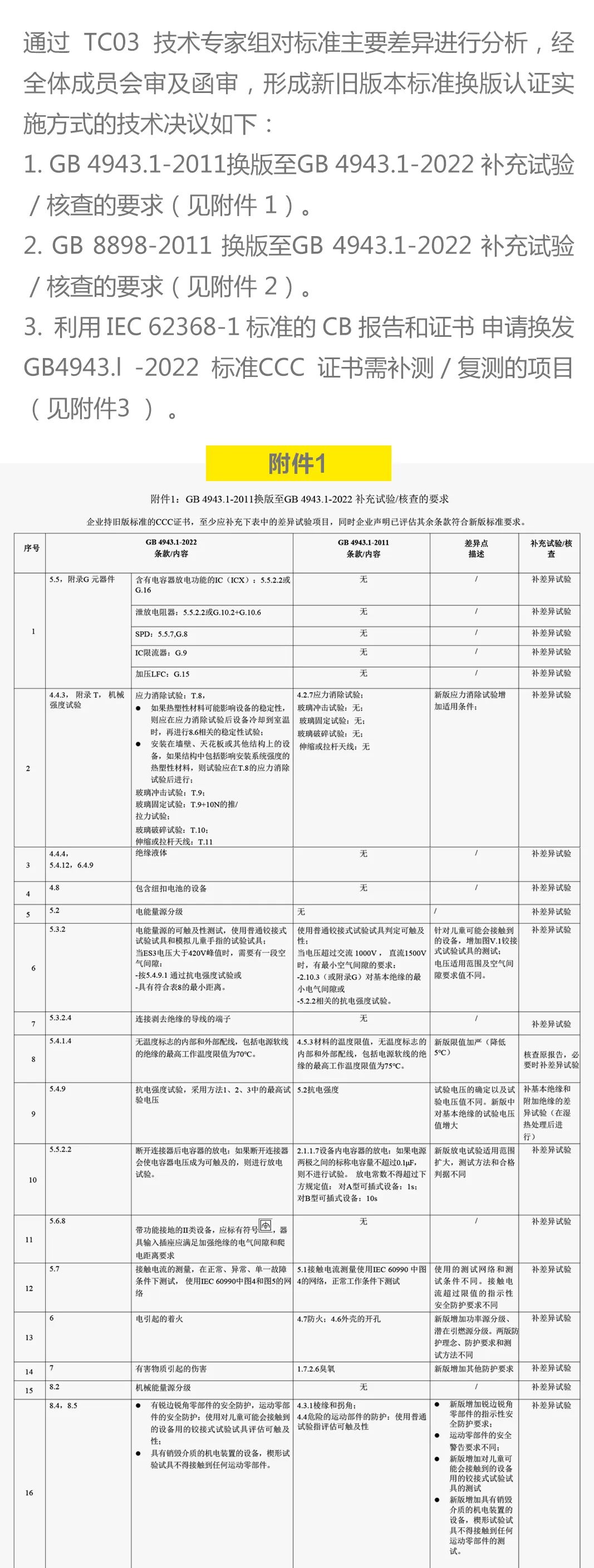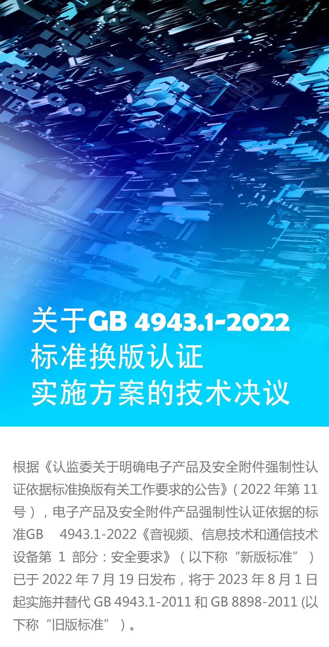 GB 4943.1-2022标准换版认证实施方案的技术决议