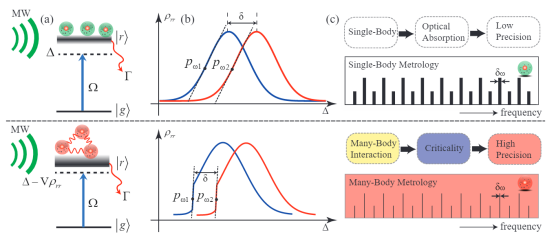 由于里德堡原子具有较大的电偶极矩,可以对微弱电场产生很强的响应,因此已经成为一个非常有前景的微波测量量子体系。此外,由于里德堡原子之间具有长程强相互作用,常被用于模拟研究强关联系统以及相变。强关联系统在临界点附近对外界扰动更加敏感,可以被应用于量子精密测量领域。
