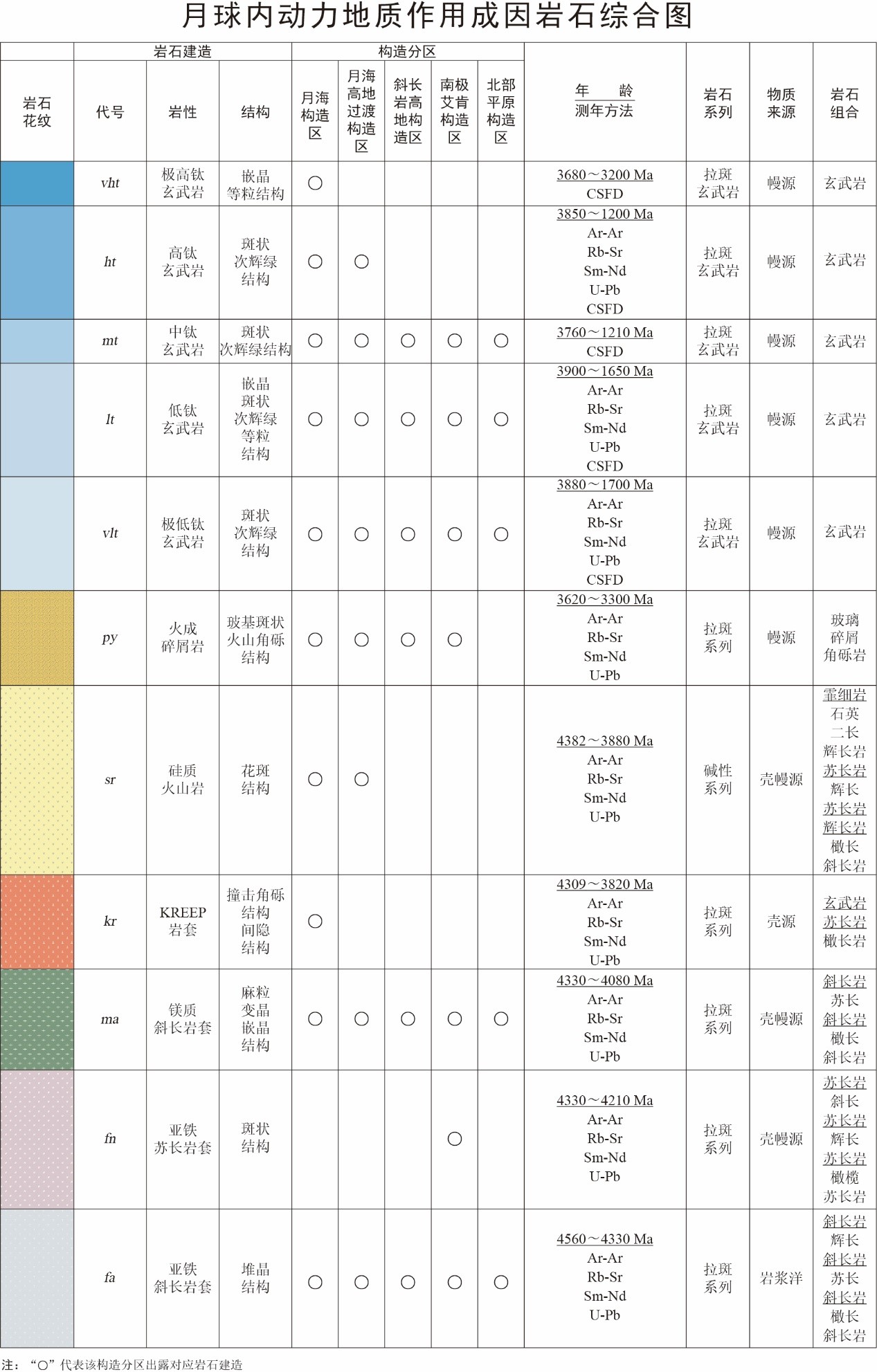 人类对于月球表面元素、矿物、岩石类型等物质成分的科学认识始于20世纪50-70年代。大量的无人月球探测和载人月球探测获得了珍贵的历史数据。由于当时缺乏全面的探测数据,最早的一批月球图以表达形貌特征为主而缺少物质成分信息。