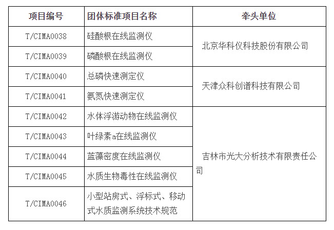 近日,中国仪器仪表行业协会发布了“关于《总磷快速测定仪》等九项团体标准立项的公告”,同意将《总磷快速测定仪》、《氨氮快速测定仪》、《叶绿素在线监测仪技术规范》《藻密度在线监测仪技术规范》、《水质综合毒性分析仪技术规范》、《水体浮游动物在线监测仪技术规范》、《小型站房式、浮标式、移动式水质监测系统技术规范》、《在线硅酸根监测仪》、《在线磷酸根监测仪》九项标准项目列为2020年团体标准制定计划,这九项标准分别由三家公司牵头。