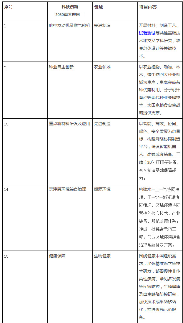 值得一体的是,不仅国家科技重大专项中包含有与仪器设备直接相关的国家重点研发计划重大科学仪器设备开发重点专项。在科技创新2030—重大项目中也多多条项目与仪器设备有关。罗列如下: