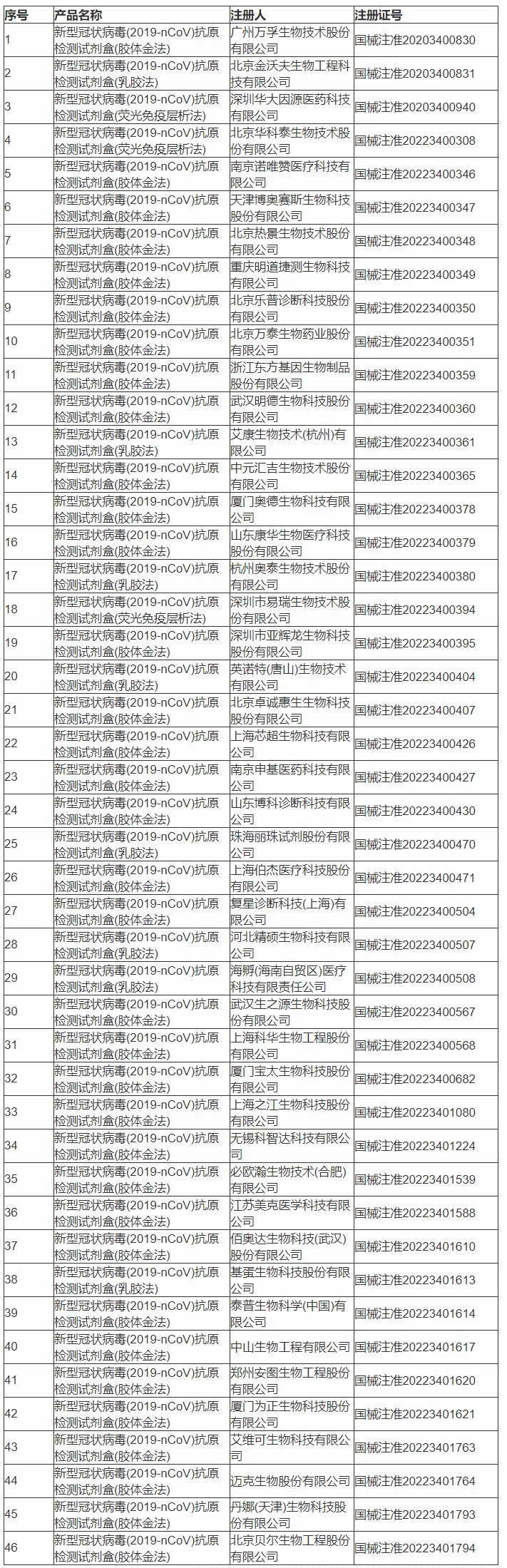 附件:国家药监局已批准的新冠病毒抗原检测试剂