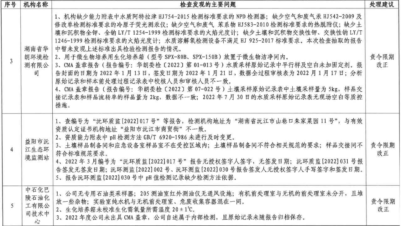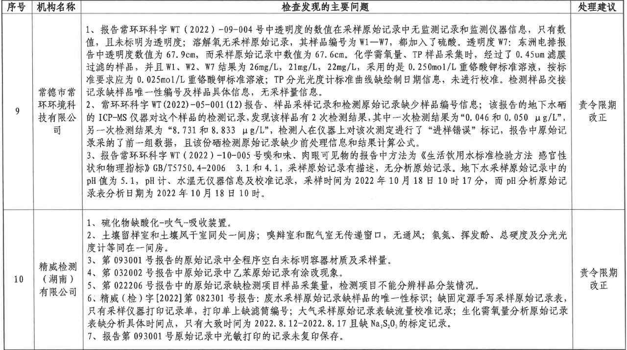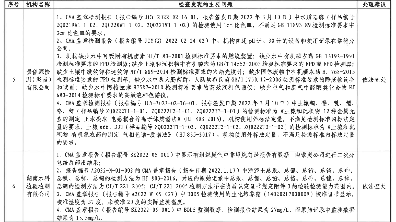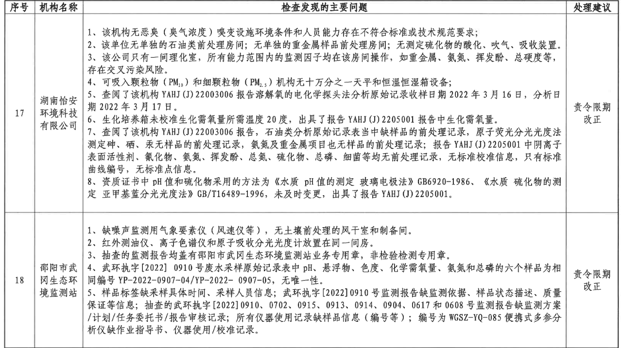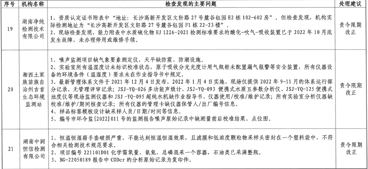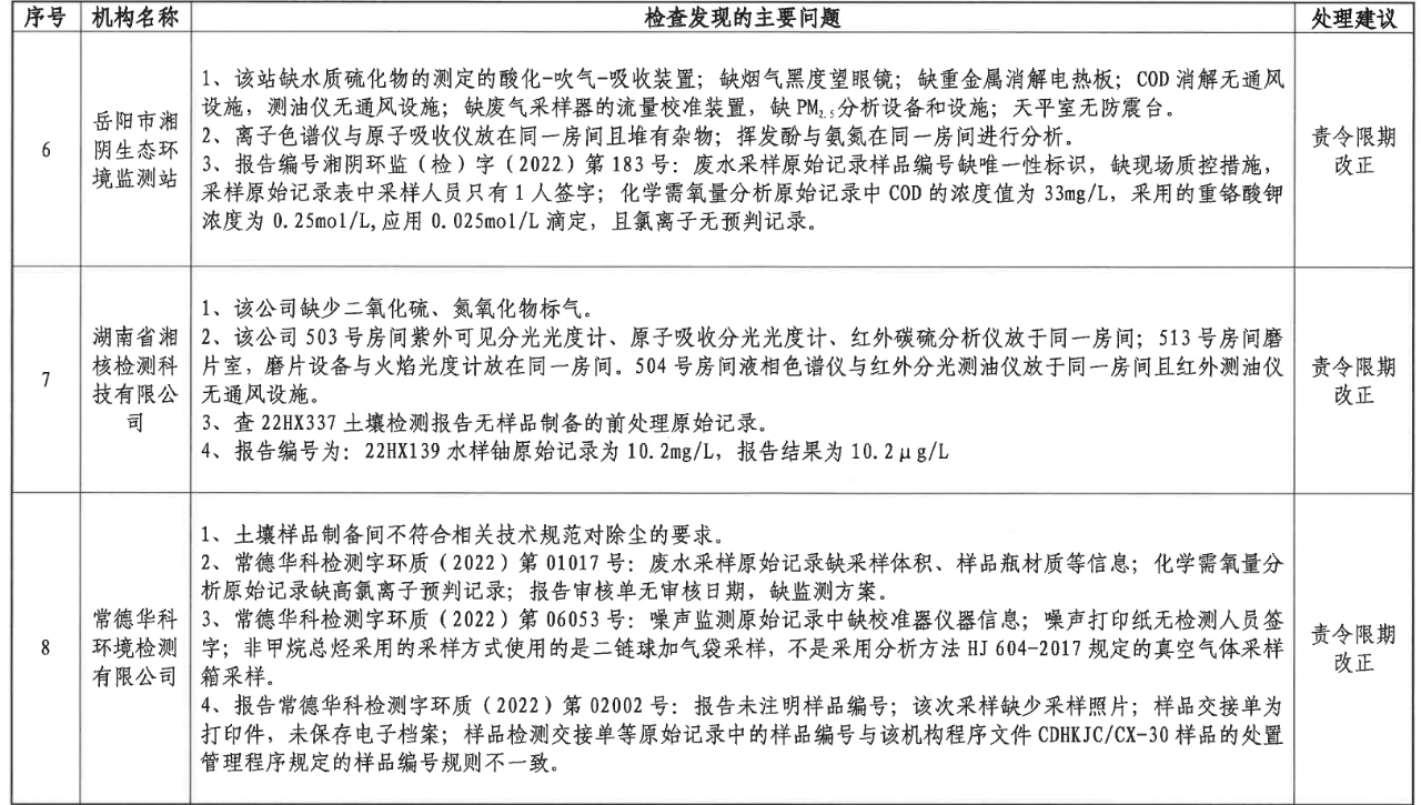 近日,湖南省生态环境厅 湖南省市场监管局对2022年度环境监测机构监督抽查情况进行了通报。通报显示,在抽查的30家环境监测机构中,其中7家机构存在未严格依据相关标准或者技术规范规定的程序和要求出具检验检测数据和结果等违规行为,列入“不实报告”的机构名单。详情如下: