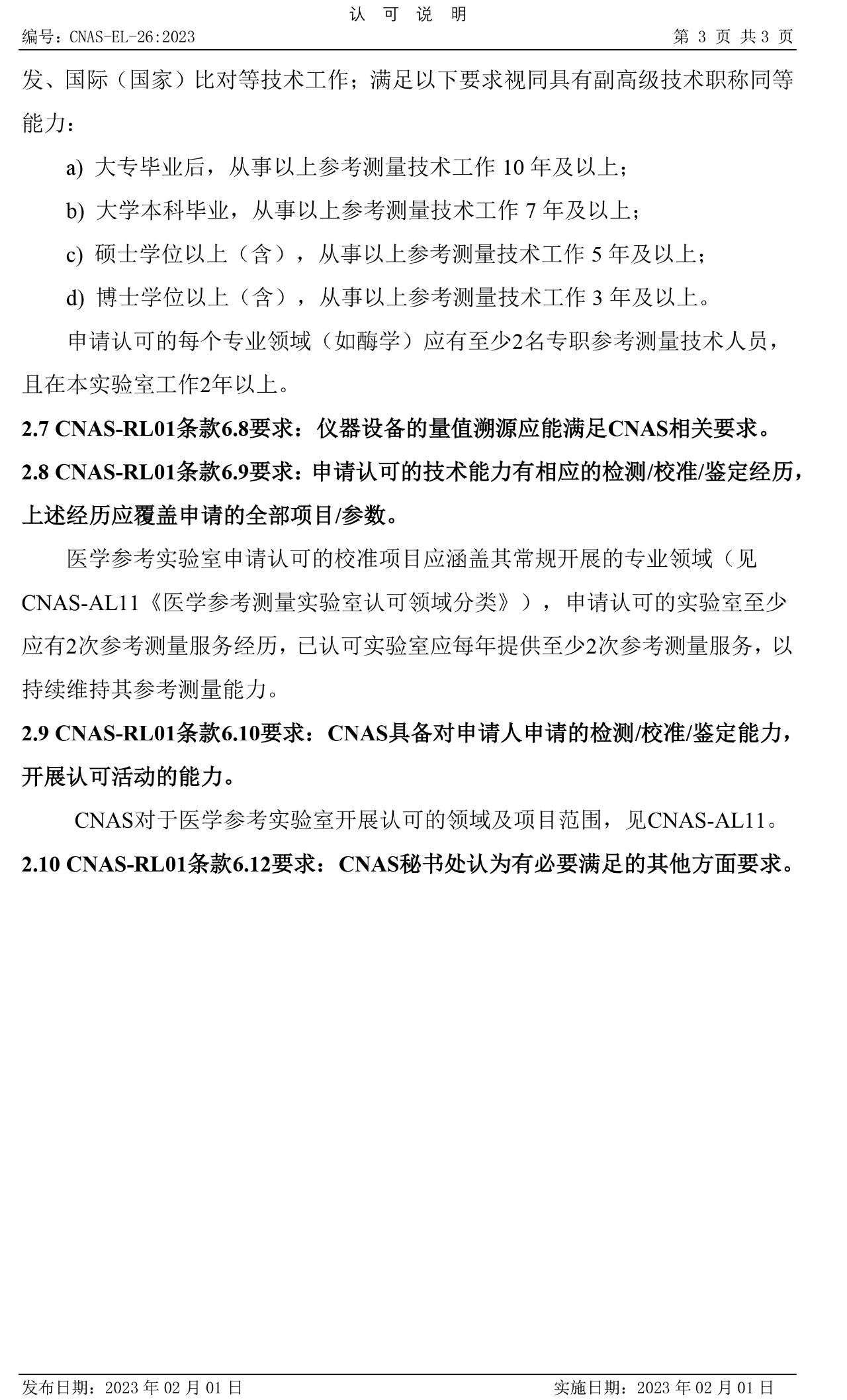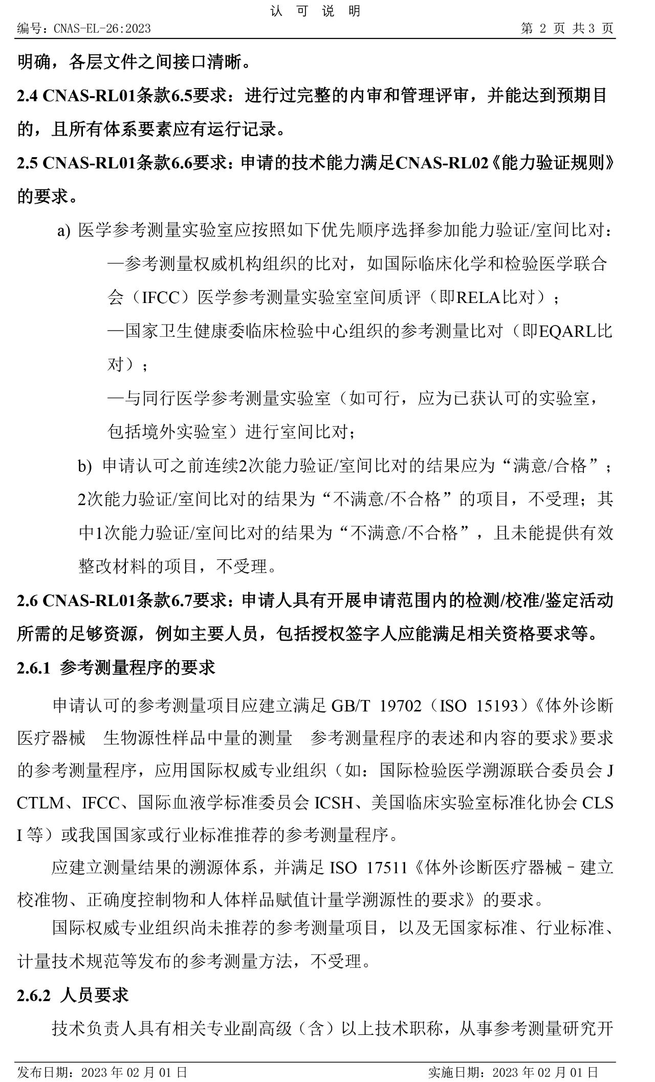 关于发布和实施CNAS-EL-26:2023《医学参考测量实验室认可受理要求的说明》的通知