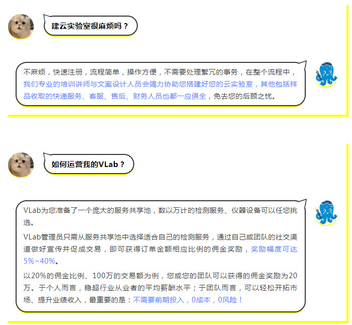 不需要租场地、买仪器,只需一部手机注册成为VLab实验室管理员,就能搭建起自己的私有云实验室,不受区域限制,不占用休息时间,简单的流程操作,即可轻轻松松抢占市场先机!