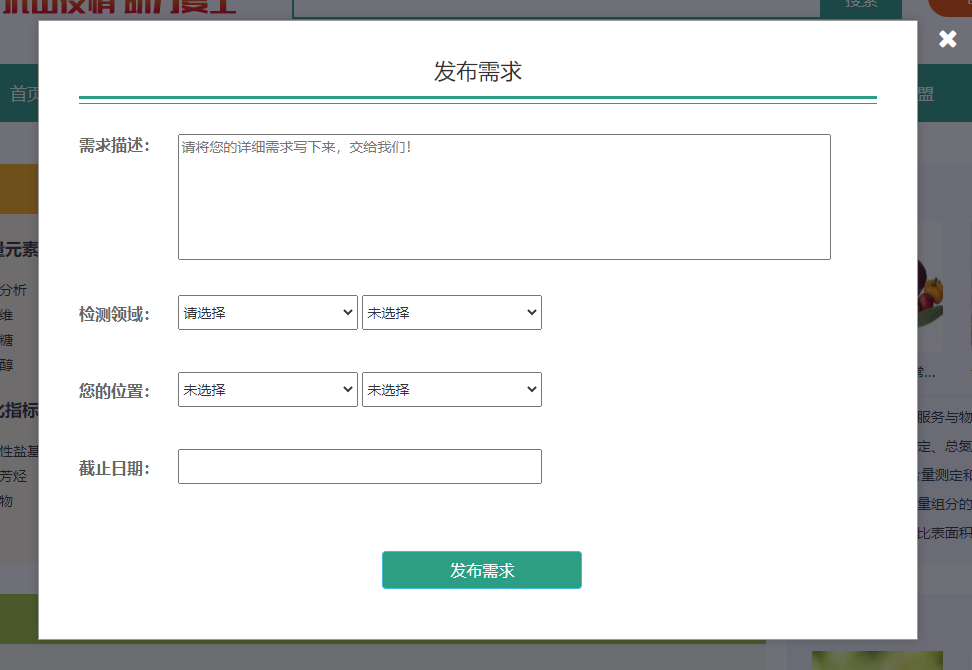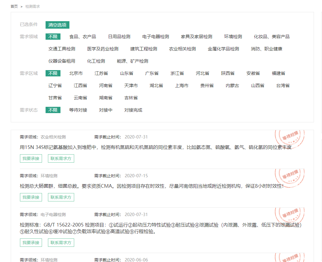 同时,在平台的检测需求栏目,所有的检测需求信息也都被开放给访问者进行浏览:![]() |