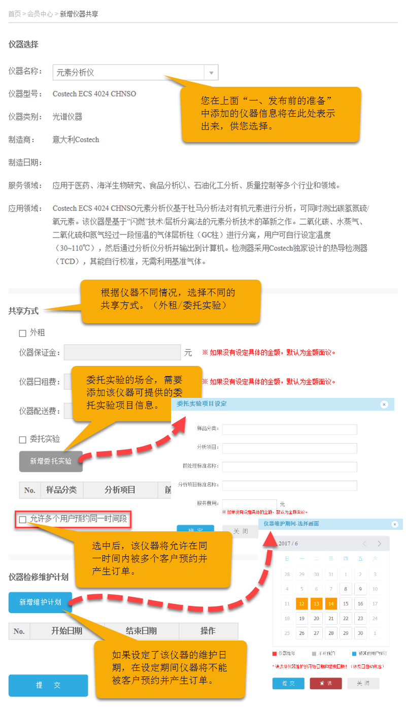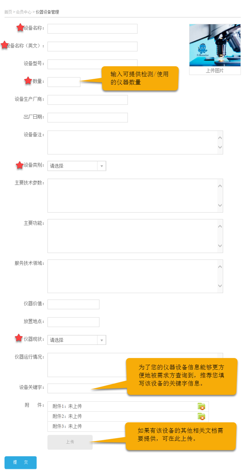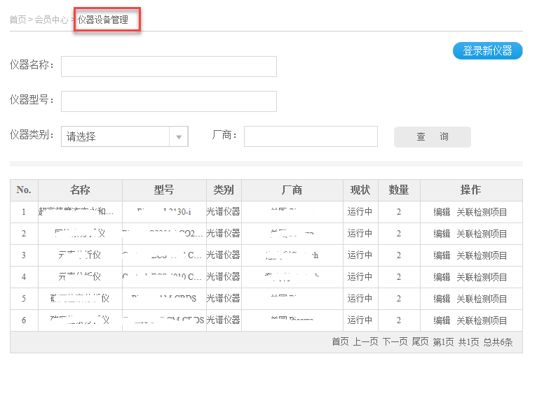 在您准备发布检测项目信息和仪器共享信息之前,请先将您的仪器设备信息登录到平台上来。