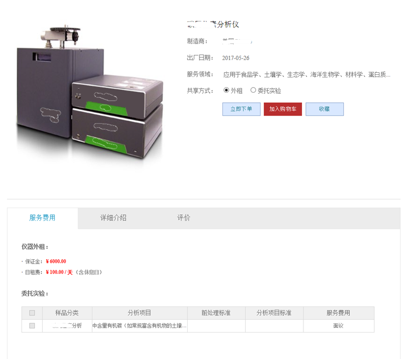 发布后的仪器共享信息在平台的展示效果,如下图所示: