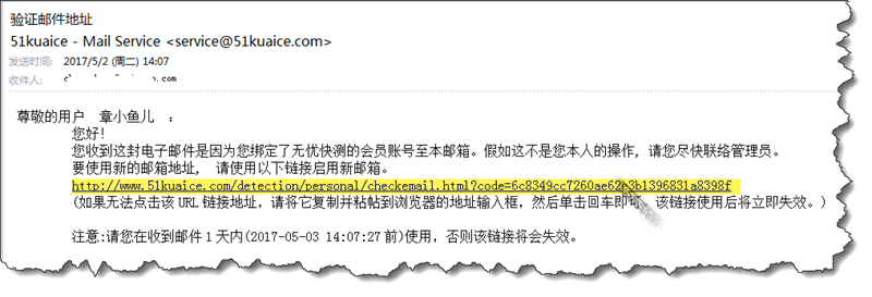 邮箱绑定操作中,无忧快测向您发送的邮箱绑定确认邮件:![]() |